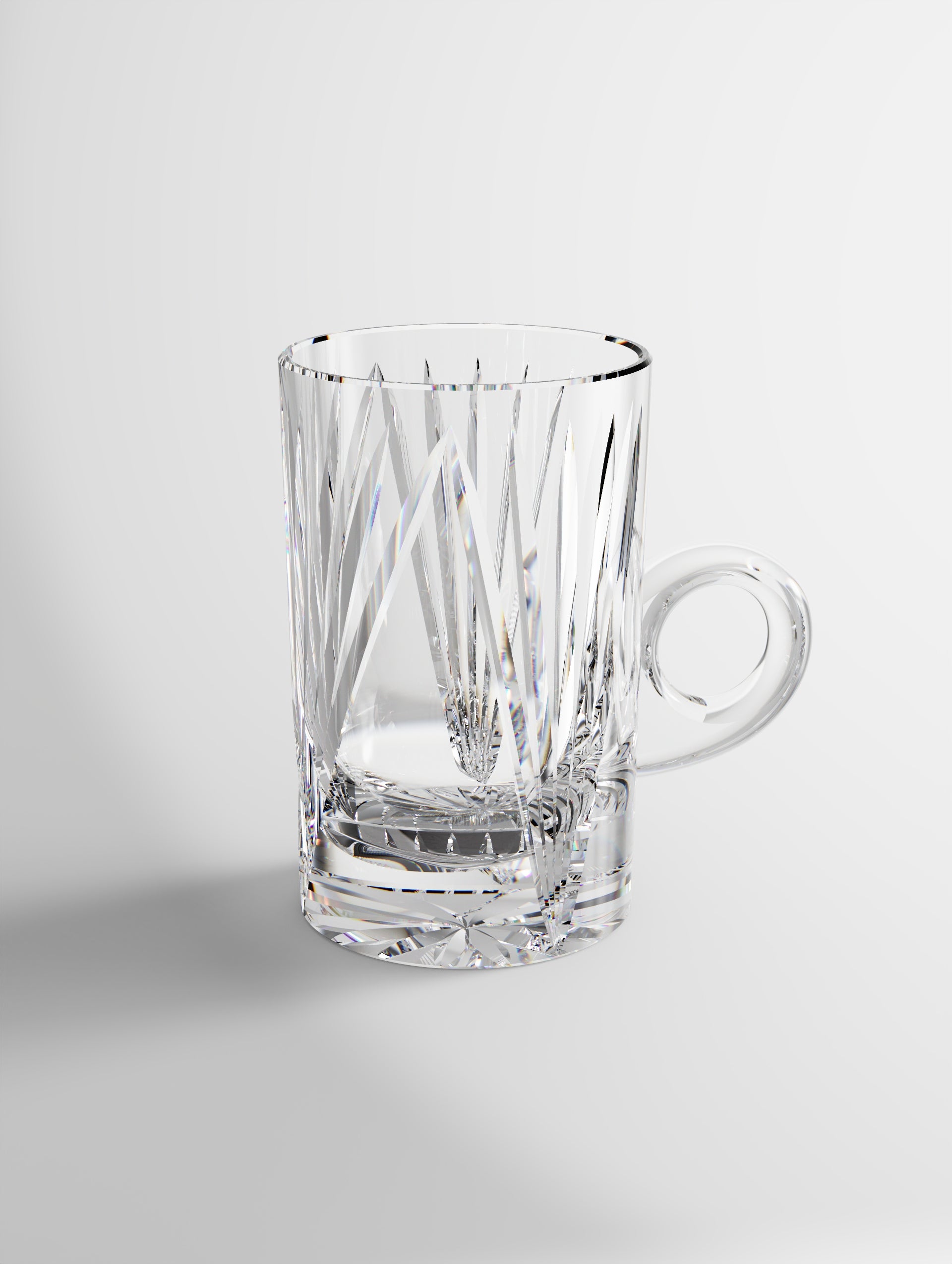 Crystal Tea Cup with Handle Featuring a Simple Cut, Merging Elegance and Functionality for an Elevated Tea Time Experience
