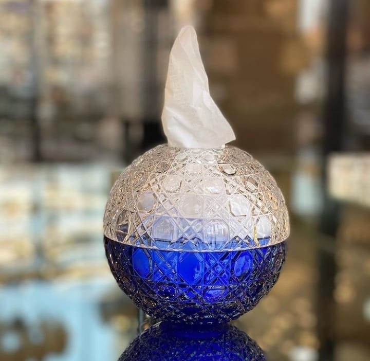 Round Crystal Tissue Box with Elegant Motif Design Cut, Combining Functionality with Timeless Elegance for Any Décor