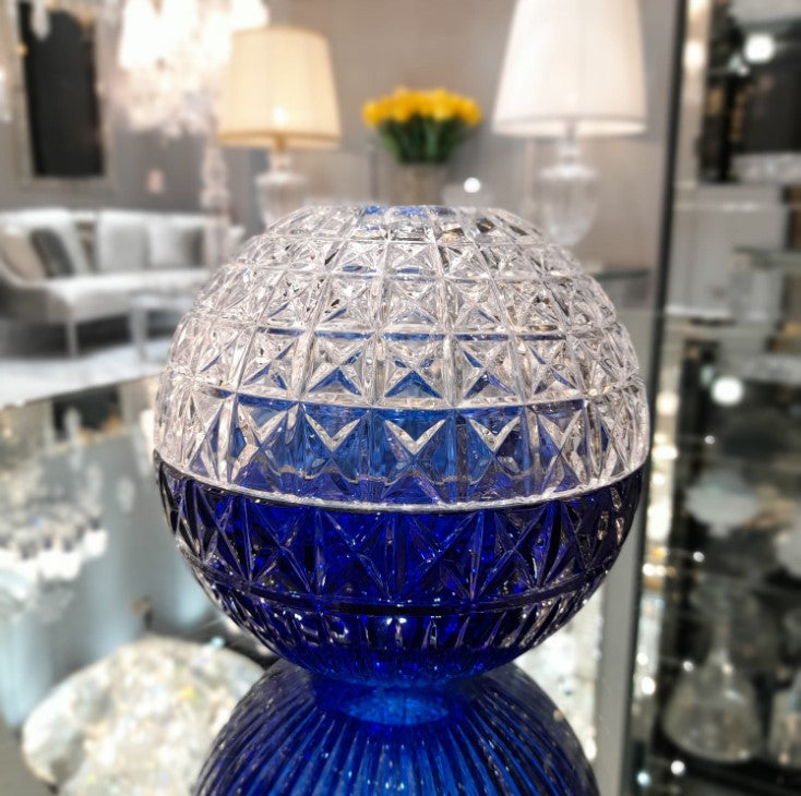Round Crystal Tissue Box with Star Design Cut, Adding a Touch of Elegance and Sparkle to Any Space