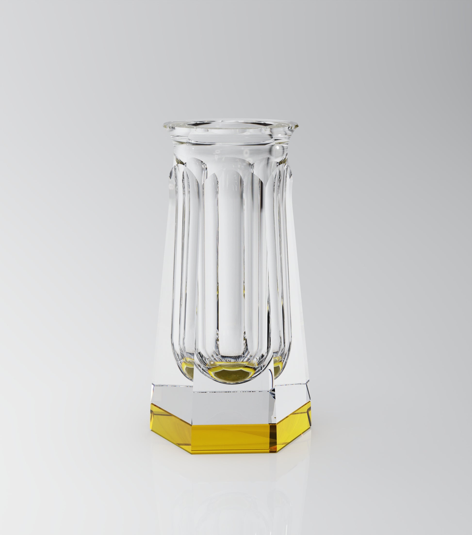 Elegant crystal vase with graceful arch designs, perfect for displaying floral arrangements. Its sophisticated silhouette adds a touch of luxury to any space